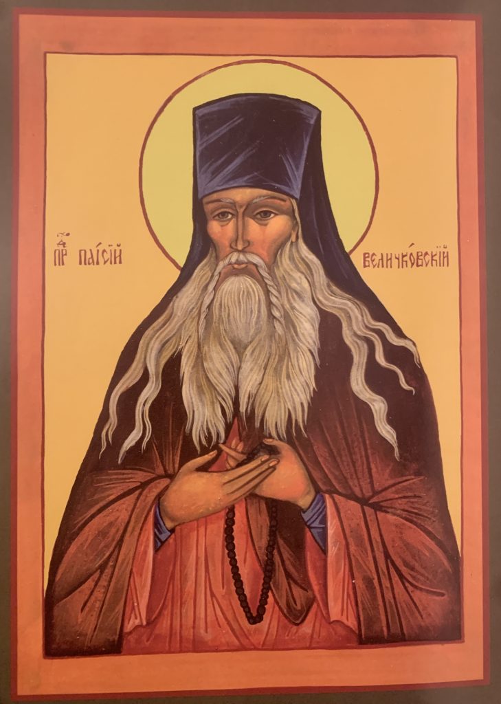 Au XVIIIe siècle, la tradition hésychaste a connu une période de crise : en Russie, Pierre le Grand et Catherine II ont imposé de sévères restrictions au monachisme, et au Mont Athos, soumis aux Ottomans, la vie spirituelle avait connu une telle déchéance que les moines ne connaissaient plus les écrits anciens concernant l’hésychasme et la pratique de la prière de Jésus. Il a fallu qu’un jeune homme s’y rende, embrasé par la nostalgie d’une vie spirituelle profonde, pour que l’intérêt pour les écrits hésychastes, cachés dans les grandes bibliothèques des monastères, soit rallumé. Ce jeune homme n’était autre que l’humble novice Platon Velitchkovski, né à Poltava, dans une famille de prêtres avec 12 enfants. Celui-ci, après avoir fait ses études à l’Académie de Kiev, est parti en 1742, vers les Principautés Roumaines, à la recherche d’un père spirituel avancé, qu’il a trouvé. Quatre ans plus tard, il partit au Mont Athos, où il sera tonsuré comme moine avec le nom de Païssy , par son père spirituel Basile lui-même. À l’Athos, Païssy s’est intéressé aux écrits hésychastes, qu’il a commencé à étudier, à corriger ou à traduire en slavon et en roumain, avec les moines de nationalités diverses réunis autour de lui puis en Moldavie dans les monastères de Dragomirna et de Neamț qui comptera autour de lui plus d’un millier de moines. Il fut l’artisan de la traduction de la Philocalie (« amour de la beauté ») a été traduite en slavon et publiée en 1793, à Saint-Petersbourg, sous le titre de « Dobrotolioibié », suivie bientôt par une traduction en russe. Saint Païssy s’est avéré être un grand novateur du monachisme, sur ses bases traditionnelles, introduisant dans la vie de la communauté l’esprit hésychaste, à savoir la garde de l’esprit contre les mauvaises pensées, l’hésychia (paix intérieure) et la prière incessante. Dans ses propres écrits, « Les voies de la vie monastique » et « Six chapitres sur la prière du cœur », Païssy fait l’apologie de la vie dans la tranquillité et la prière de Jésus. En Russie, l’esprit païssien a pénétré la majorité des monastères, dont le plus célèbre est celui d’Optino, avec ses grands starets. Dans le même esprit païssien s’est formé aussi Saint Séraphin de Sarov, tout comme l’auteur du célèbre récit Le pèlerin russe.