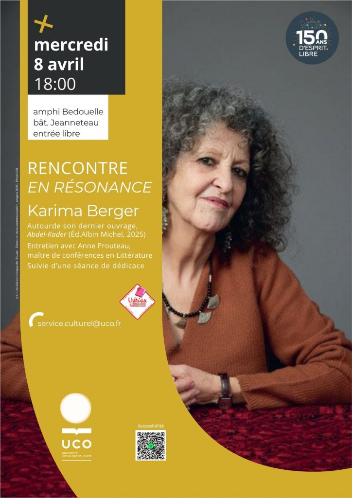 Nous aurons le plaisir d’accueillir Karima Berger, qui viendra présenter son ouvrage consacré à l’émir Abdelkader, figure emblématique du dialogue interconvictionnel. Attention, début à 18 h.