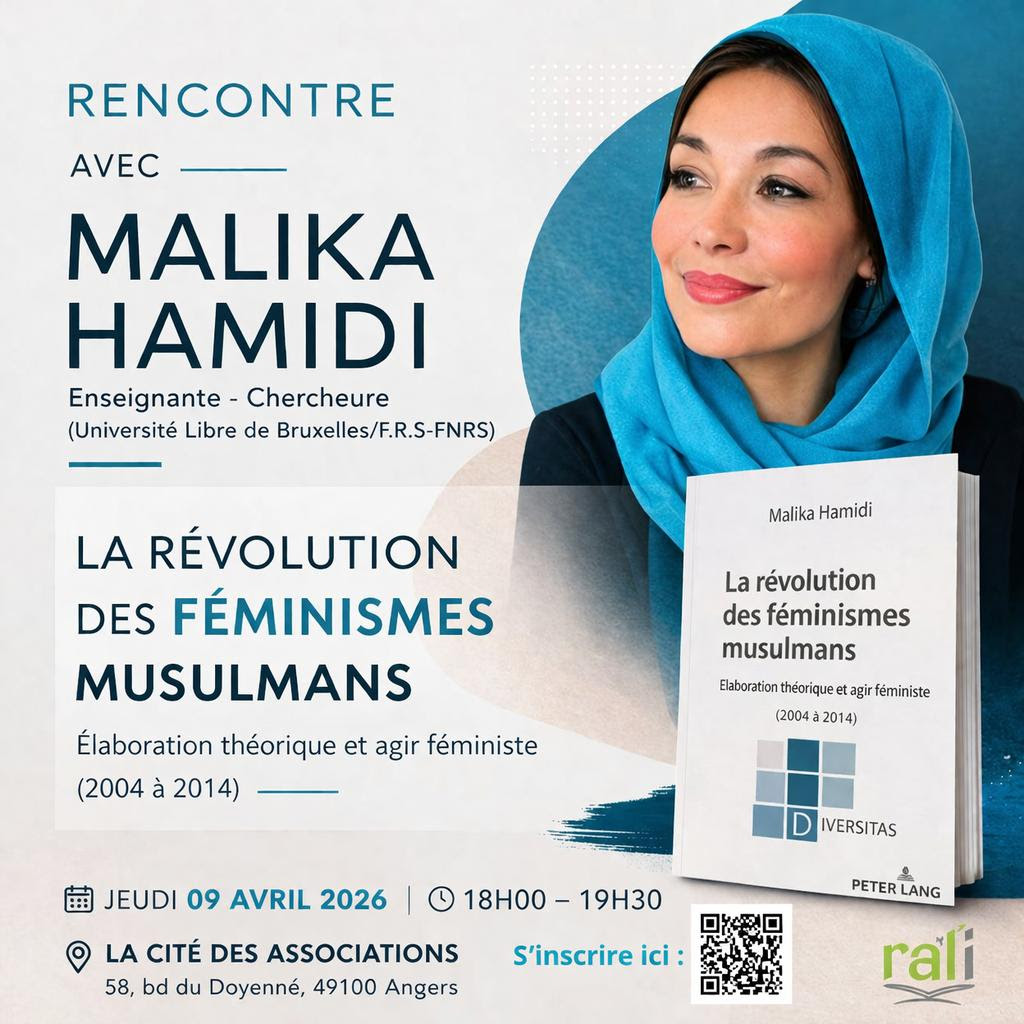 L’association Rali reçoit Malika Hamidi pour une conférence autour de son dernier ouvrage, La révolution des féminismes musulmans : élaboration théorique et agir féministe. À travers son livre, Malika Hamidi explore les dynamiques multiples des féminismes musulmans à travers le monde. Elle met en lumière des mouvements souvent méconnus qui articulent foi, émancipation et engagement social. Sa réflexion propose un regard nuancé et documenté sur les transformations en cours, tout en interrogeant les idées reçues.